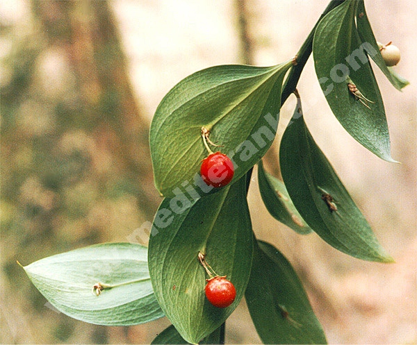 Several species make good garden plants. Perhaps most widely grown is Ruscus aculeatus, which is native in southern England and occurs across southern Europe. It forms an erect plant, 50—80 cm high, and grown for its shoots bearing prickly cladodes, bright red berries and well-used for its ability to survive in deep shade. This is the species known as 'Butchers' Broom', which butchers indeed used to use to sweep their blocks. The larger leaved R. hypoglossum, also from southern Europe, is a more leafy plant with arching stems that bears cherry-red fruits, and, again, it makes excellent ground cover in shade.