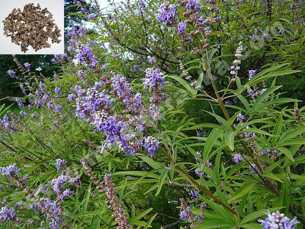 Vitex agnus-castus, also called Vitex, Chaste Tree, Chasteberry or Monk's Pepper, is a native of the Mediterranean region. Vitex agnus-castus is widely cultivated in warm temperate and subtropical regions for its delicate-textured aromatic foliage and butterfly attracting. It grows to a height of 1–5 meters. It requires full sun or partial shade along with well-drained soil. The leaves and tender stem growth of the upper 10 cm, along with the flowers and ripening seeds, are harvested for alternative medicinal purposes. The berries are harvested by gently rubbing the berries loose from the stem. The leaves, flowers, and berries may be consumed as a decoction, traditional tincture, cider vinegar tincture, syrup, elixir, or simply eaten straight off the plant as an alternative medicinal food. In alternative medicine, it is believed the berries are a tonic herb for both the male and female reproductive systems. The leaves are believed to have the same effect but to a lesser degree.