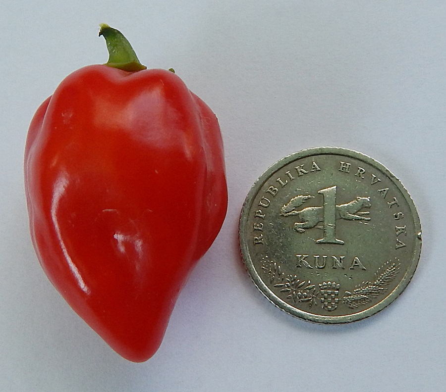 The habanero (Capsicum chinense) is a variety of chili pepper. Unripe habaneros are green, and they color as they mature. Common colors are orange and red, but white, brown, and pink are also seen. Typically a ripe habanero chili is 2–6 centimetres long. Habanero chilis are very hot, rated 100,000–350,000 on the Scoville scale. The habanero's heat, its fruity, citrus-like flavor, and its floral aroma have made it a popular ingredient in hot sauces and spicy foods. In 2000, the habanero was listed in the Guinness Book of World Records as the world's hottest chili, but it has since been displaced by a number of other peppers, the record tending to change hands every few years.