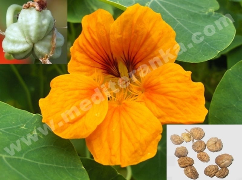 All its parts are edible. The flower has most often been consumed, making for an especially ornamental salad ingredient, it has a slightly peppery taste reminiscent ofwatercress, and is also used in stir fry. The flowers contain vitamin C. Moreover, they contain up to 45 mg of lutein per 100 gr, which is the highest amount found in any edible plant. The unripe seed pods can be harvested and dropped into spiced vinegar to produce a condiment and garnish, sometimes used in place of capers.
