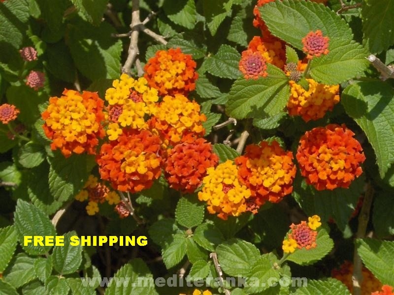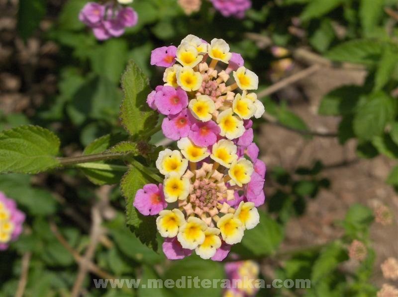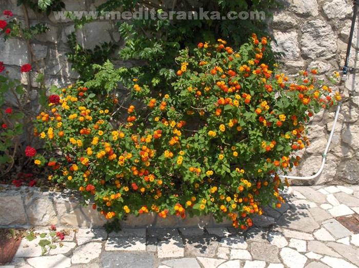 Lantana camara belongs to the family Verbenaceae, which includes other species of the genus lantana. The natural habitat of these species are tropical areas of America. Some species grow in height and 1.8 m and width up to 2.4 m. With the support of some can be grown as climbers. Stalk and leaves are covered with hairs. Length of leaves 5 to 7 cm, while the width grows 2 to 5 cm. At the top of the stalks are small flowers. Flower diameter ranges between two and five cm. In the tropics lantana blooms throughout the year, and inland until the first frosts. The flowers come in different colors and shades of white and yellow through orange to red and purple and pink. Sometimes the flowers are orange from a distance, but in a group of colorful flowers are white, red and yellow which is observed only at close range. Lantana is a plant that will adapt to different soil types and different amounts of water, and likes halfshadow sunny position. Very well tolerated drought. Plant does not tolerate temperatures below -2 ° C. At this temperature hangs overhead part. In spring, plant the roots of the chase again. Lantana can grow by seed or cuttings taken in summer. In areas where winters are warm lanthanum is used for interior ceilings. It is often combined with other shrubs remain green for long. Is a fast growing shrub that blooms in the first year. Because of these properties