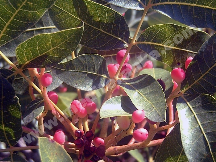Pistacia terebinthus is a plant related to Pistacia lentiscus (see my offer - medicinal plants), with which hybridizes frequently in contact zones. Terebinth tree (cornicabra) is more abundant in the mountains and inland, and the P. lentiscus (mastic) is usually found more frequently in areas where the Mediterranean influence of the sea moderates the climate. Mastic tree does not reach the size of the Pistacia terebinthus, but the hybrids are very difficult to distinguish.