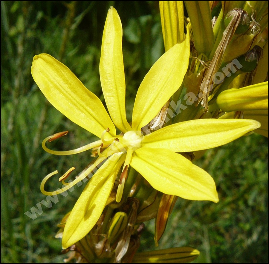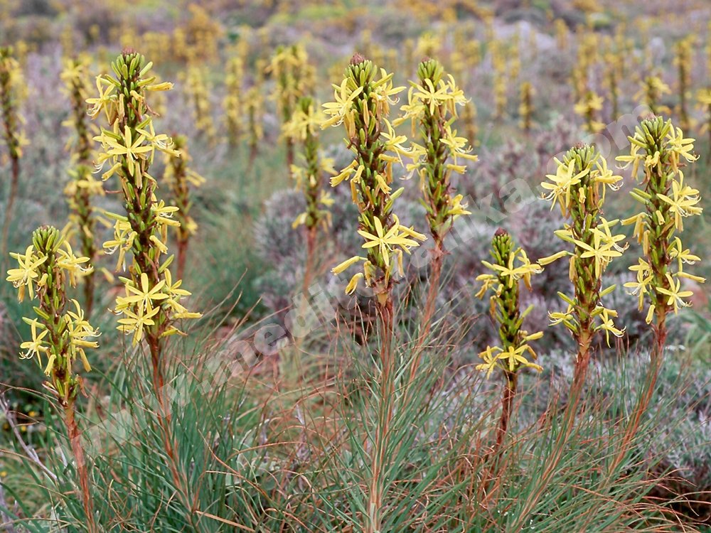 Asphodeline lutea is a perennial growing to 1 m by 1 m. It is in flower from Jun to July, and the seeds ripen from July to September. The flowers are sweetly scented. Plants seem to be immune to the predations of rabbits. The flowers are hermaphrodite (have both male and female organs) and are pollinated by insects. It can grow in semi-shade (light woodland) or no shade. The plant can tolerate maritime exposure.