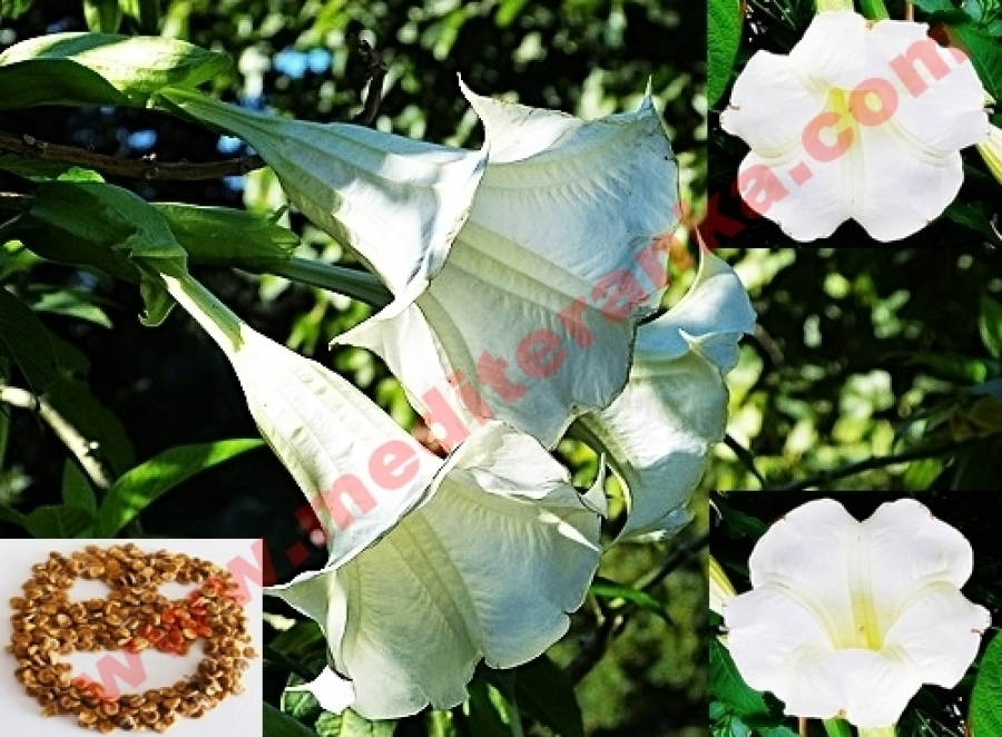 All parts of Datura plants contain dangerous levels of poison and may be fatal if ingested by humans and other animals, including livestock and pets. When cultivated, the plant is usually grown from seed, but its perennial rhizomes can be kept from freezing and planted in the spring of the following year. Datura inoxia, like other Datura species, contains the highly toxic alkaloids atropine, hyoscine, andhyoscyamine. Datura intoxication typically produces a complete inability to differentiate reality from fantasy, hyperthermia, tachycardia, bizarre, and possibly violent behavior that can last several days. Pronounced amnesia is another commonly reported effect. It has also been planted throughout the world as an ornamental plant for its attractive large leaves, large white flowers, and distinctive thorny fruit. Datura inoxia is closely related to Datura stramonium (see offer) differs in having smaller flowers and tooth-edged leaves.