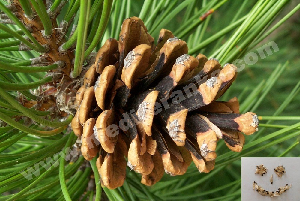 Black pine (Pinus nigra) is a moderately variable species of pine, occurring across southern Mediterranean Europe. Pinus nigra is a tree of the Mediterranean forests, woodlands, and scrub biome. There are remnant populations in the Mediterranean conifer and mixed forests ecoregion. It is found at elevations ranging from sea level to 2,000 metres, most commonly from 250–1,600 metres. Pinus nigra is a large coniferous evergreen tree, growing to 20–55 metres tall at maturity. The bark is grey to yellow-brown, and is widely split by flaking fissures into scaly plates, becoming increasingly fissured with age.
