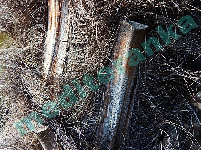 Windmill palm (Trachycarpus fortunei), the Chinese windmill palm or Chusan palm, is a species of hardy evergreen palm tree, growing to 12m tall. The flowers are yellow about 2–4 mm across. The fruit is a blue-black, kidney bean shaped drupe 10–12 mm long.