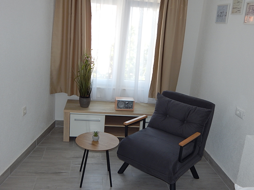 Apartman Alex se nalazi iza kuće u odvojenom objektu, parking je ispred kuće, udaljenost od mora i plaže je niti 50m, opremljen je s bežičnim internetom i televizijom.