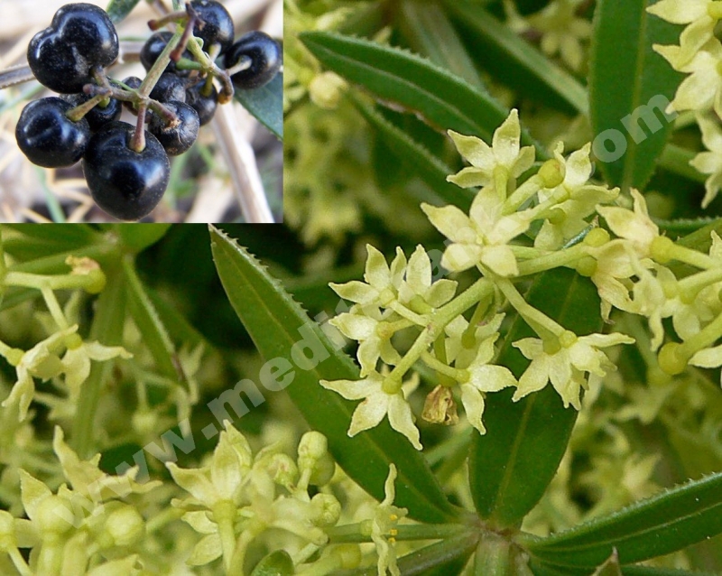 Strani broć (Rubia peregrina) spada u porodicu Broćike (Rubiaceae). Narodni nazivi su Broćac ili Broćika. Broć je zimzelena puzavica ili penjačica. Iz podanka s vriježama izrastaju vitke, povijene stabljike dužine 30 – 300 cm koje na bridovima nose zavinute bodlje kojima se biljka prihvaća pri penjanju. Kora starijega dijela stabljike je siva, a mlađega zelena. Sjedeći listovi dugi su do 6 cm i skupljeni u krugovima po četiri ili osam, a na rubovima također bodljasti. Zvonasti vjenčić, promjera oko 6 mm, žućkasto je zelen, s pet ušiljenih režnjeva. Cvjetići su skupljeni u bogate cvatove, cvate od lipnja do kolovoza. Sjajni crni plodić mesnata usplođa nalikuje na bobicu promjera do 5 mm. Plod je jednosjemeni, sjemenka je duga oko 3 mm, crna, i na jednoj strani zaravnjeno ulegnuta.