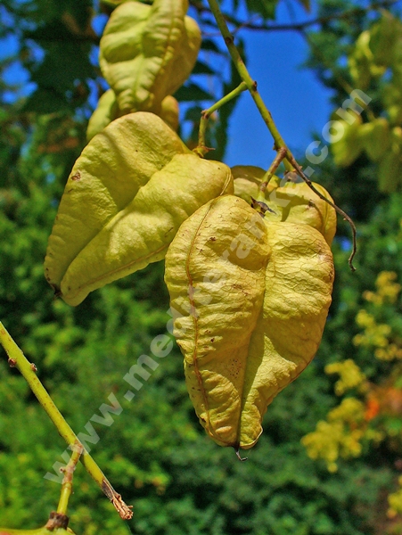 Zlatna kiša (Koelreuteria paniculata), Metličasta kelreuteria, domovina biljke su Kina, Koreja, Japan. Kelreuteria je srednje do brzorastuće listopadno stablo visine do 15 m. Nije stablo koje će vam osigurati duboku hladovinu jer ima rahlu krošnju. Deblo i grane su joj debele i zakrivljene, krošnja je zaobljena, okrugla, no može biti i nepravilna. Lišće je dužine oko 35 cm, kod olistavanja pomalo ružičasto, kroz ljeto zeleno a jesen ga oboji narančasto prema crvenoj. Cvate početkom ljeta, već u vrlo mladoj dobi, kao dvogodišnja biljčica i vrlo je medonosna pa privlači leptire i pčele. Smeđi mjehurasti plodovi veličine 4-5 cm, zadržavaju se na krošnji gotovo cijelu zimu.