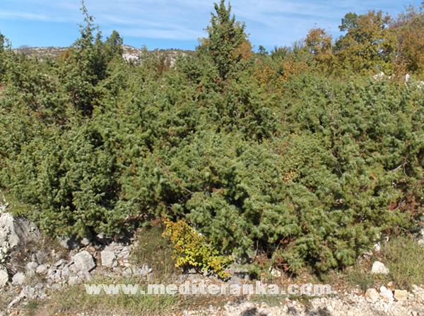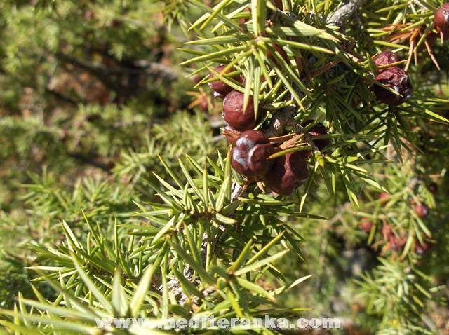 Crvena kleka – smrič – Juniperus oxycedrus je zimzelen grm visine od 0,5 do 7 m, sa vrlo uskim, zašiljenim, bodljikavim listićima, vrlo otporan, gusto i nepravilno razgranat grm. Zeleni plodovi su jajastog oblika, a zreli su okrugli i crno-ljubičasti, imaju smolast i aromatičan miris i gorko sladak okus. Cijela biljka je ljekovita, ali se najčešće koriste plodovi. Ljekoviti su samo potpuno zreli plodovi, ljubičaste boje dvogodišnji, dok jednogodišnji zeleni, nisu ljekoviti, pa ih ne treba koristiti. Beru se od kraja ljeta do početka zime, a suše na propuhu.. Iglice i mlade grane beru se od travnja do kraja lipnja, koje se usitne i suše na isti način kao i plodovi. Cvjetovi su sitni i nalaze se u pazuhu listova, odvojeni na pojedinim biljkama. Plod je okrugla bobica, u prvoj godini je zelena, a tek u drugoj sazrije, kada je crno-smeđa i okrugla, sa plavom peteljkom. Moguć je i trogodišnji period od cvjetanja do sazrijevanja.