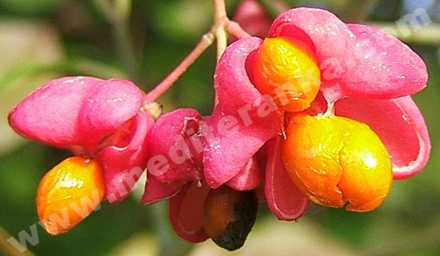 Kora je u mlađoj dobi zelenkasto, smeđe i sivo prošarana, često s plutastim uzdužnim izraslinama, kod starijih primjeraka siva do sivosmeđa i nešto raspucana. Izbojci su zeleni, starije grančice četverobridne sa širokim i tankim krilastim izraslinama. Pupovi su unakrsno nasuprotno raspoređeni na izbojcima, jajasti, obavijeni većim brojem zelenkastih i na rubovima crvenkastosmeđih ljusaka. Cvjetovi dvospolni, do devet zajedno skupljeni u paštitastim cvatovima, četiri latice, četiri lapa. Vrijeme cvjetanja je travanj-svibanj. Plodovi četverodijelni, 1-1,5 cm veliki i nakon dozrijevanja se raspucavaju na četiri jednaka dijela. Sjemenke jajaste, bijele do blijedo žute, oko 5 mm velike, obavijene s narančastocrvenim arilusom, vise na tankim nitima.